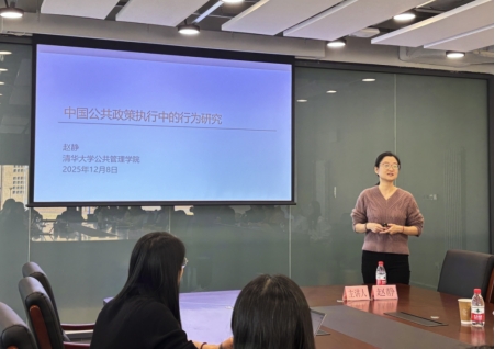 2025年12月8日下午,中央财经大学政府管理学院主办的“为公讲堂”第63期在学院楼9号楼104会议室成功举办。本次讲座以“中国公共政策执行中的行为研究”为主题,清华大学公共管理学院长聘副教授赵静老师担任主讲人。讲座由政府管理学院崔晶教授主持,政府管理学院和社会与心理学院部分师生参与了讲座。