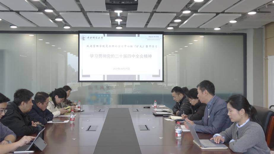 2025年10月29日,政府管理学院党委在沙河校区学院9号楼104会议室召开党委理论学习中心组(扩大)学习会,专题传达学习党的二十届四中全会精神。学院党委理论学习中心组成员、师生党支部书记参加会议,会议由学院党委书记于鹏主持。